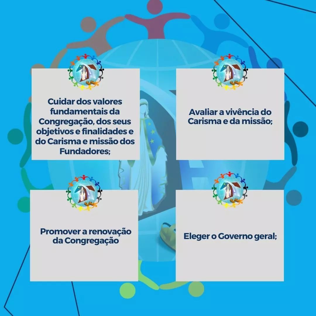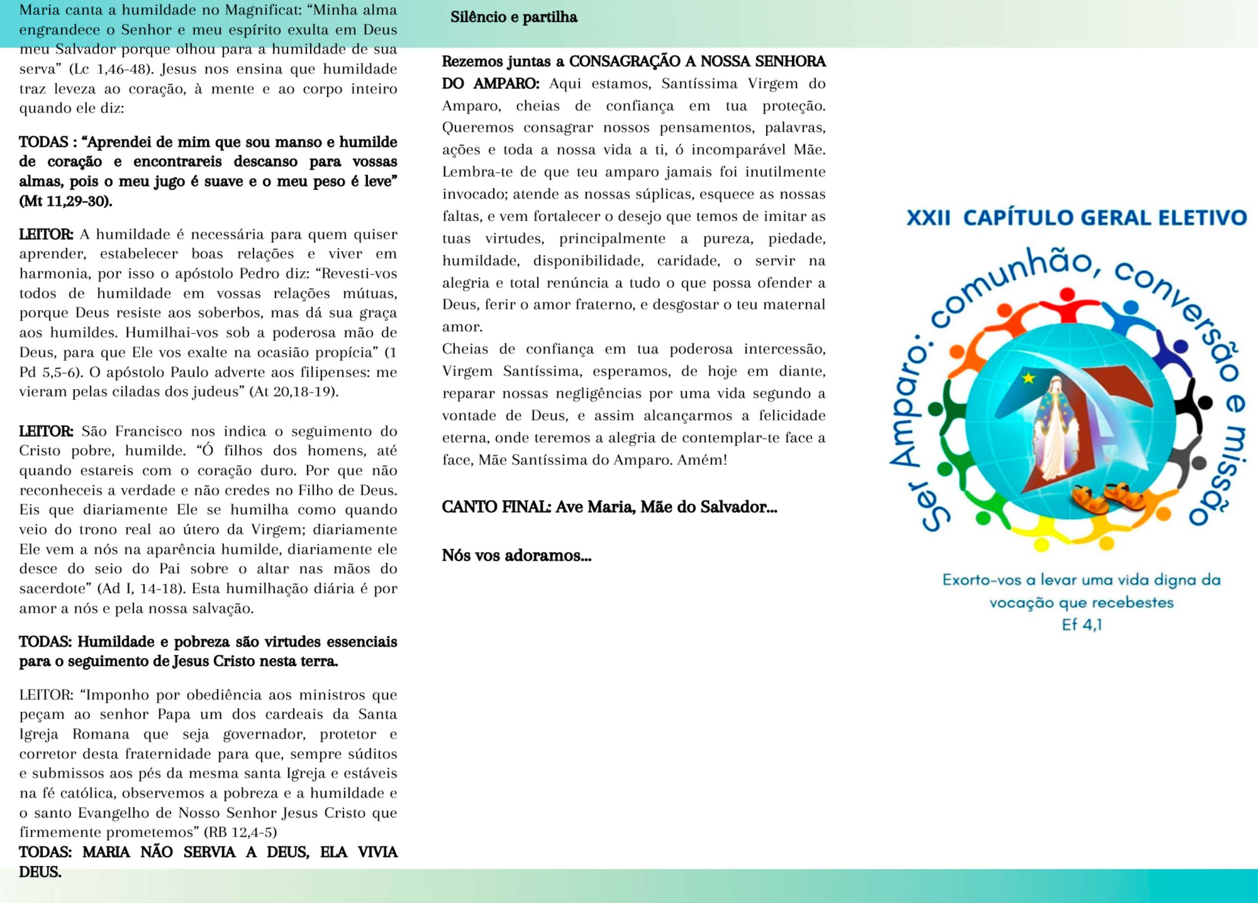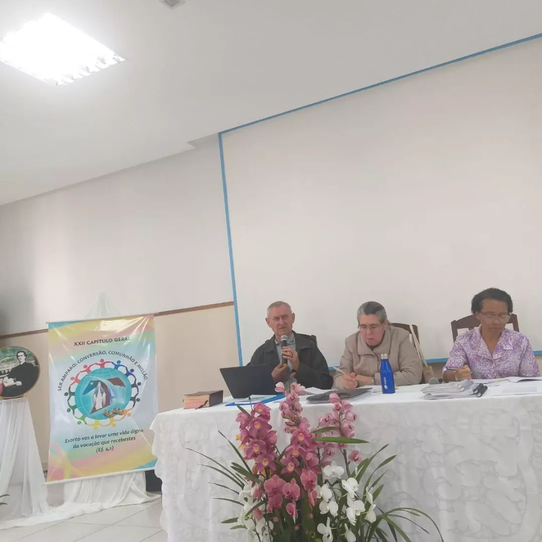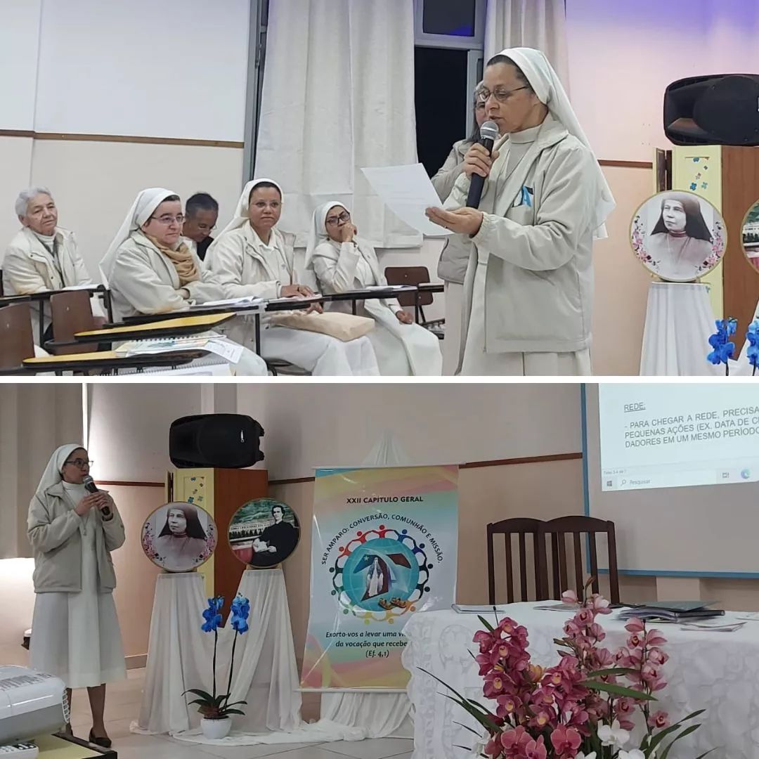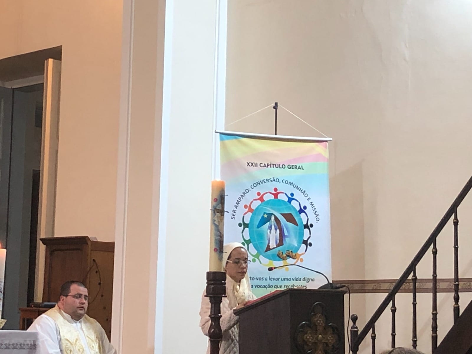 Com o coração em festa louvamos e rendemos graças ao bom Deus, por todo o bem que Ele nos concedeu viver o XXII Capítulo Geral, com o tema: Ser Amparo: Conversão, Comunhão e Missão e o lema: Exorto-vos a levar ima vida digna da vocação que recebestes (Ef. 4,1)
