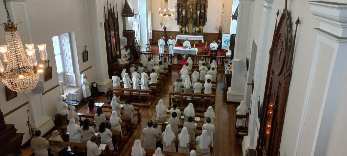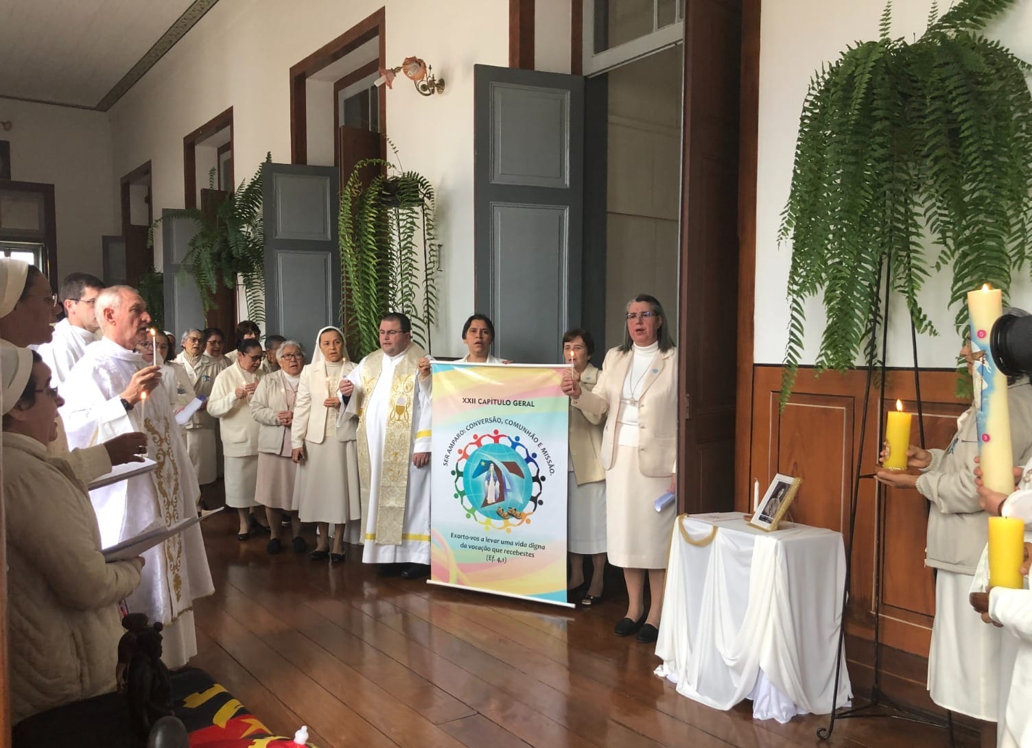 Na abertura do XXII Capítulo Geral, aconteceu a recordação da vida de todas as Superioras Gerais. A Celebração Eucarística contou com a presença do assessor do Capítulo, Frei Moacir Casagrande, OFMCap, Frei Jorge Paulo Schiavini, OFM, Guardião do Convento Sagrado Coração de Jesus OFM, Frei William Gomes, OFMConv, Convento São Boaventura e o Padre Manoel Gouvêa, do Clero da nossa Diocese de Petrópolis. Estavam presentes, além das Irmãs Capitulares, formandas e Irmãs da Casa Mãe, alguns amigos, benfeitores e colaboradores da missão do Amparo, como também, Irmã Graça, Carmelitas Descalças,Carmelo São José (Petrópolis).