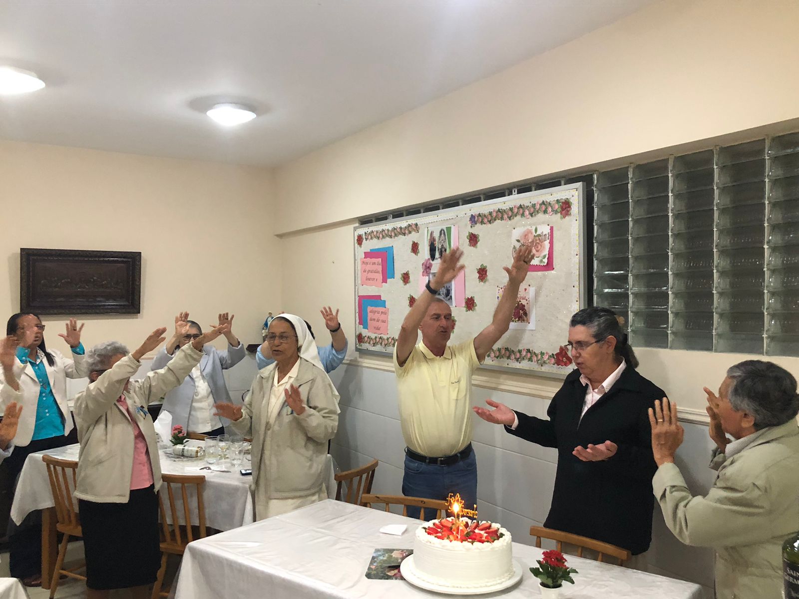 No dia 12/11comemoramos o dom da vida da Irmã Silma, Superiora Geral da Congregação,colocando no altar do Senhor a sua existência. Na Missa, Véspera do 33º Domingo do Tempo Comum, presidida por Frei Moacir Casagrande OfmCap, bem como no momento deconfraternização,estavam presentes muitas Irmãs representando nossas fraternidades. A ocasião foi encerrada com um delicioso jantar seguido dashomenagens,regados pela alegria e fraternidade franciscanas.