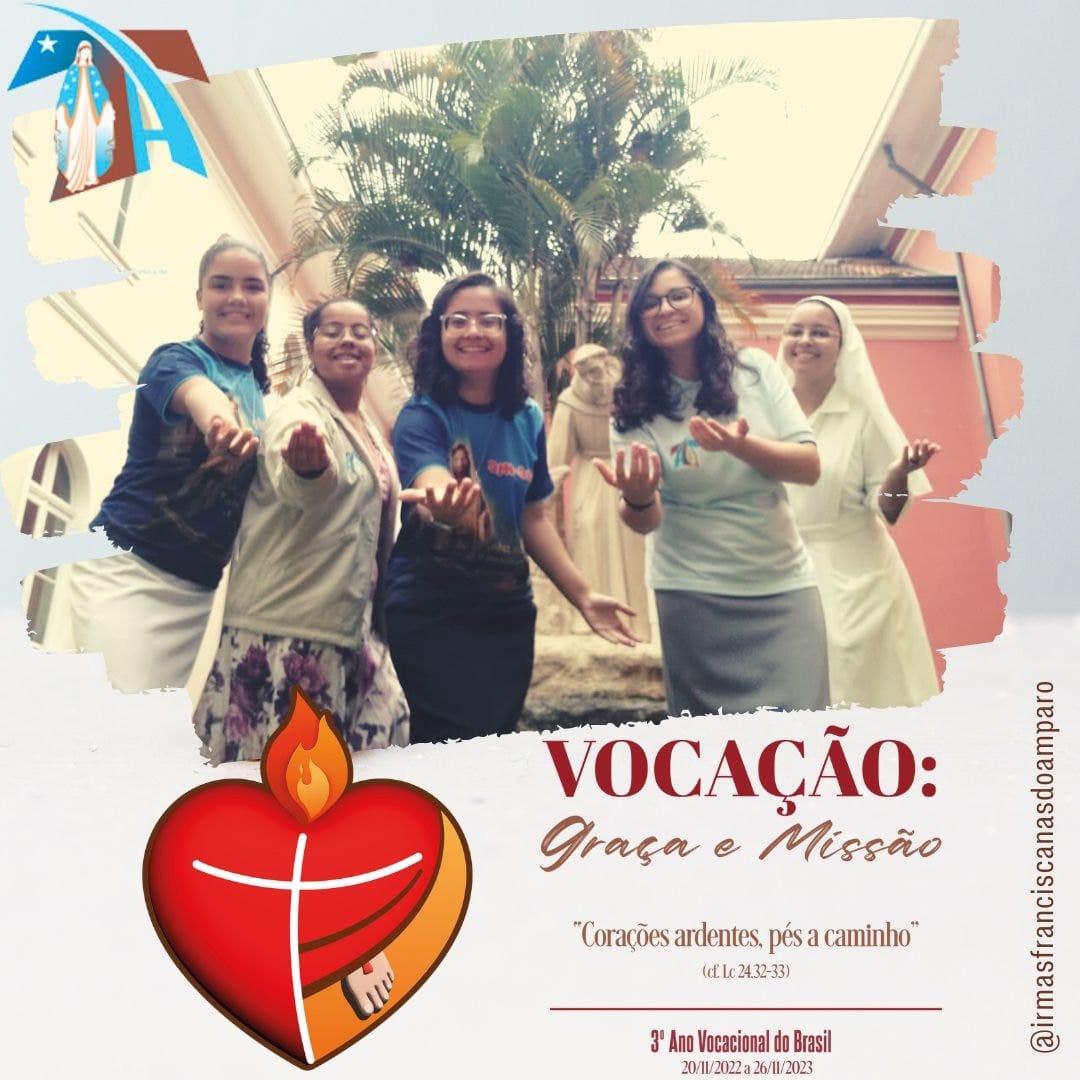 O tema do Ano Vocacional 2023 é “Vocação: Graça e Missão” e o lema “Corações ardentes, pés a caminho” (cf. Lc 24, 32-33).
