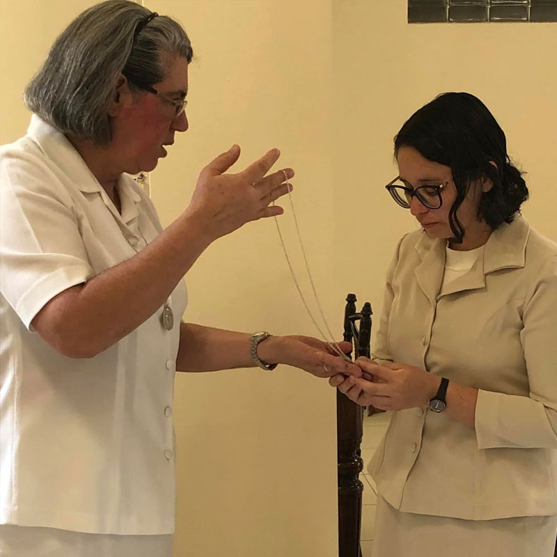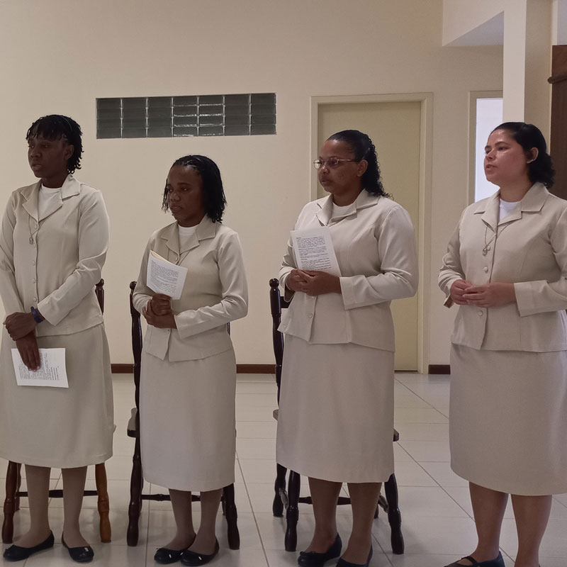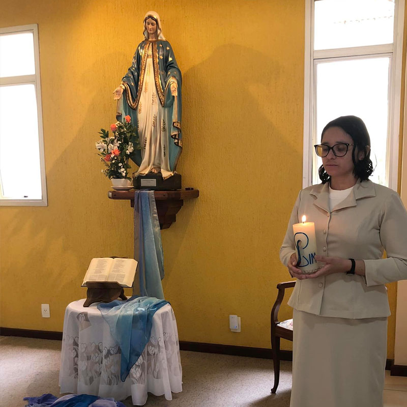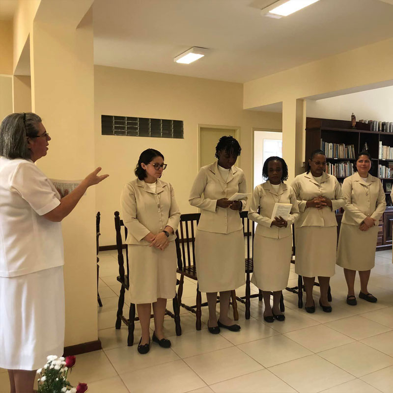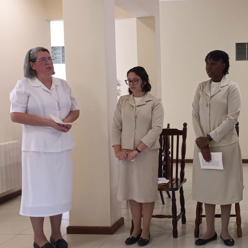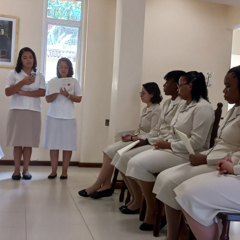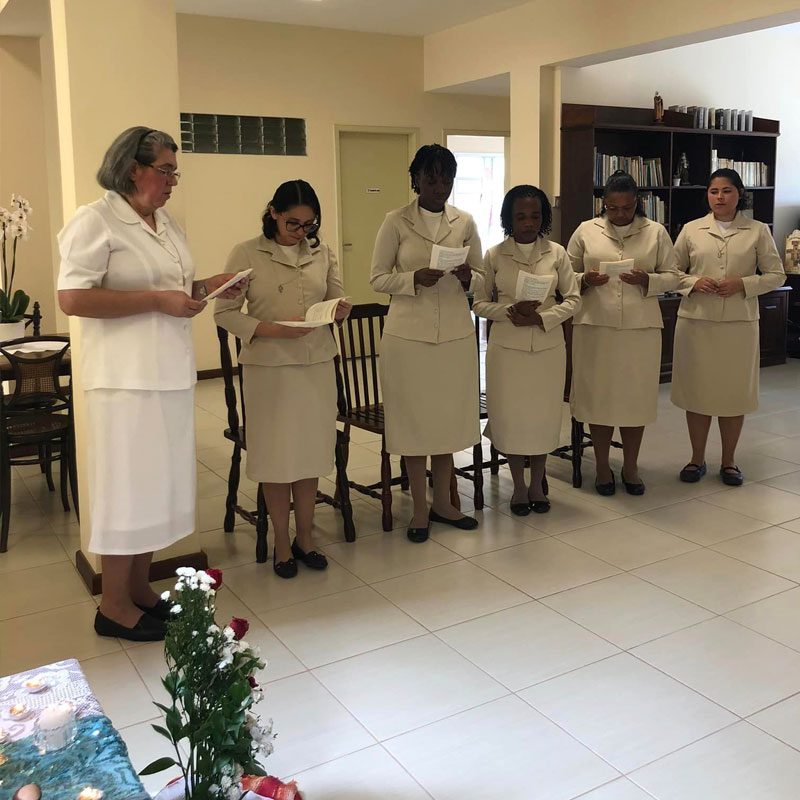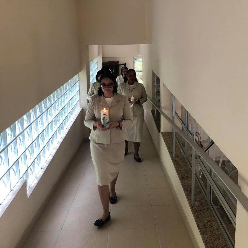 No dia dois de fevereiro de dois mil e vinte e três, dia em que a Igreja celebra a Apresentação do Senhor e também o Dia Mundial da Vida Consagrada nossa Congregação se enche de alegria e ação de graças pelo ingresso no Noviciado da jovem Maria Ruthielly dos Santos Moura, pelo sim generoso desta jovem ao chamado de Jesus para a Vida Religiosa Franciscana do Amparo. No entusiasmo, alegria e no vigor da graça do chamado, inicia conosco sua caminhada formativa, no Noviciado.