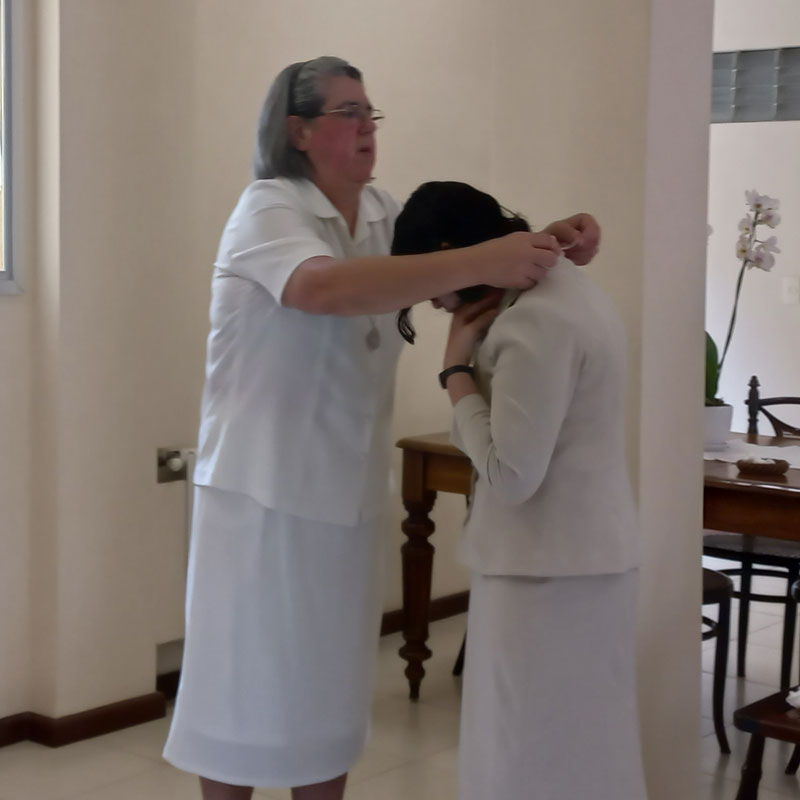 A celebração de acolhida ao noviciado tem um rito próprio e teve início às 11h, na Fraternidade Monte Alverne, contamos com a presença fraterna, das Irmãs e Postulantes da Fraternidade da Casa Mãe.