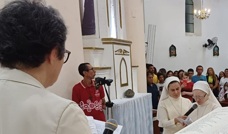 Aconteceu ainda, à noite na Matriz São Sebastião, o Encontro com as Juventudes. Momento conduzido pelas Irmãs com oração, música, dinâmica e testemunho vocacional.