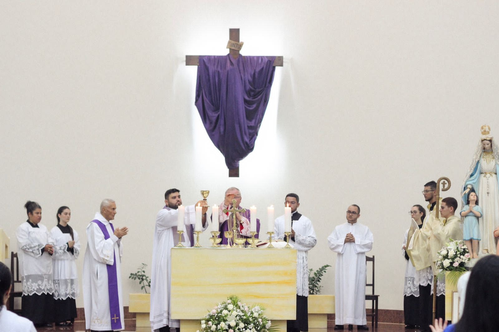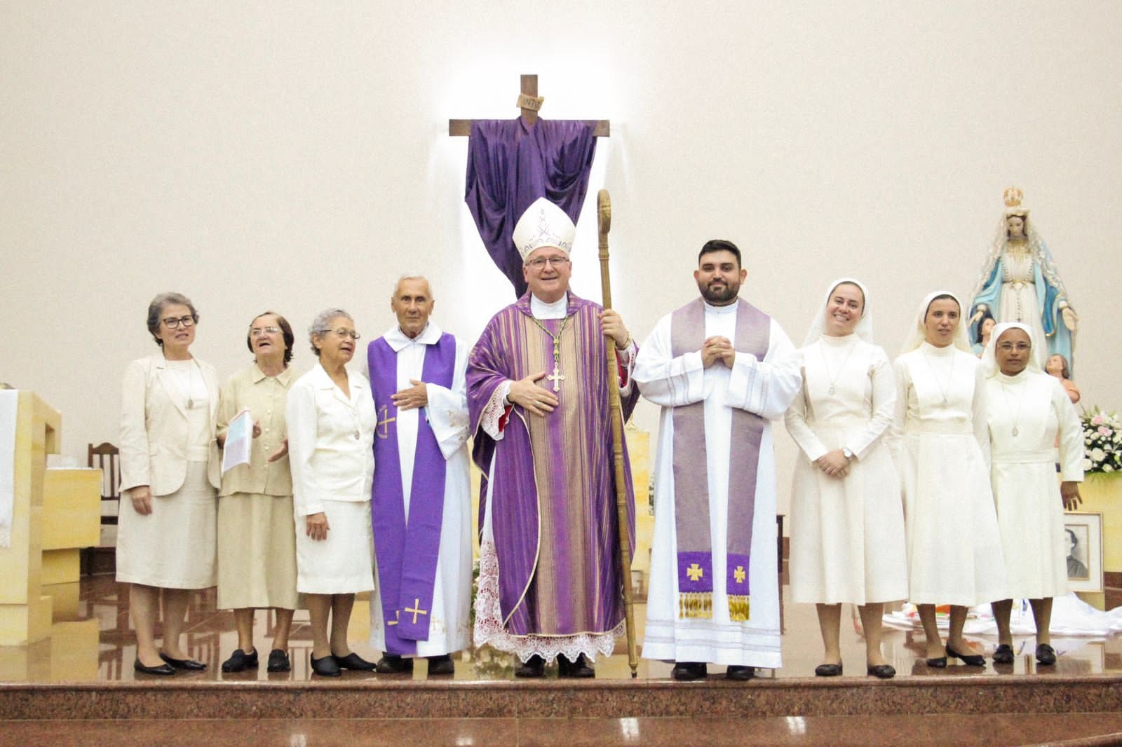 A Santa Missa foi celebrada pelo bispo diocesano Dom Cláudio Nori Sturm, concelebrada pelo Pe. Arthur Nelson de Oliveira,Pe.Antônio Severo. A nossa Ministra Geral Irmã Cleusa Aparecida Neves Cfa, também veio compartilhar e celebrar conosco. Gratidão a Deus e a comunidade de Monte Carmelo.