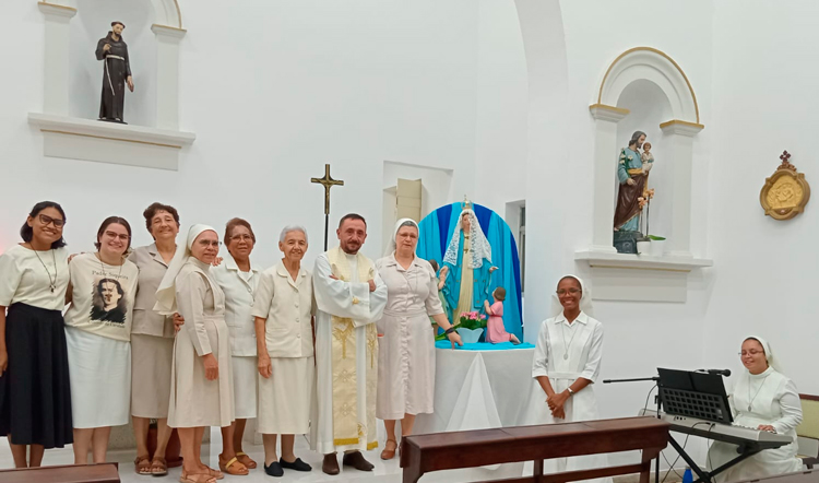Neste mês de maio, consagrado à Virgem Maria, nós Irmãs Franciscanas do Amparo nos reunimos com fervor e alegria nas comunidades de Maceió/AL, no dia 24 de maio, e do Rio de Janeiro/RJ, no dia 25 de maio, para celebrar a presença amorosa e intercessora de Nossa Senhora, Mãe do Amparo e Padroeira de nossa Congregação.