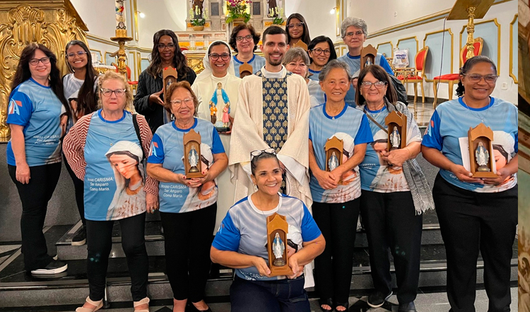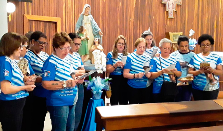 Durante o mês mariano, envoltos pelo olhar terno e materno de Nossa Senhora do Amparo, os Leigos e Leigas do Carisma do Amparo renovaram com fé e alegria seus compromissos de Guardiões e Guardiãs do Título de Nossa Senhora do Amparo. Foi um tempo de graça, de profunda entrega espiritual e de reafirmação do chamado à vivência do Evangelho nas pegadas de Maria e no espírito franciscano do nosso carisma.