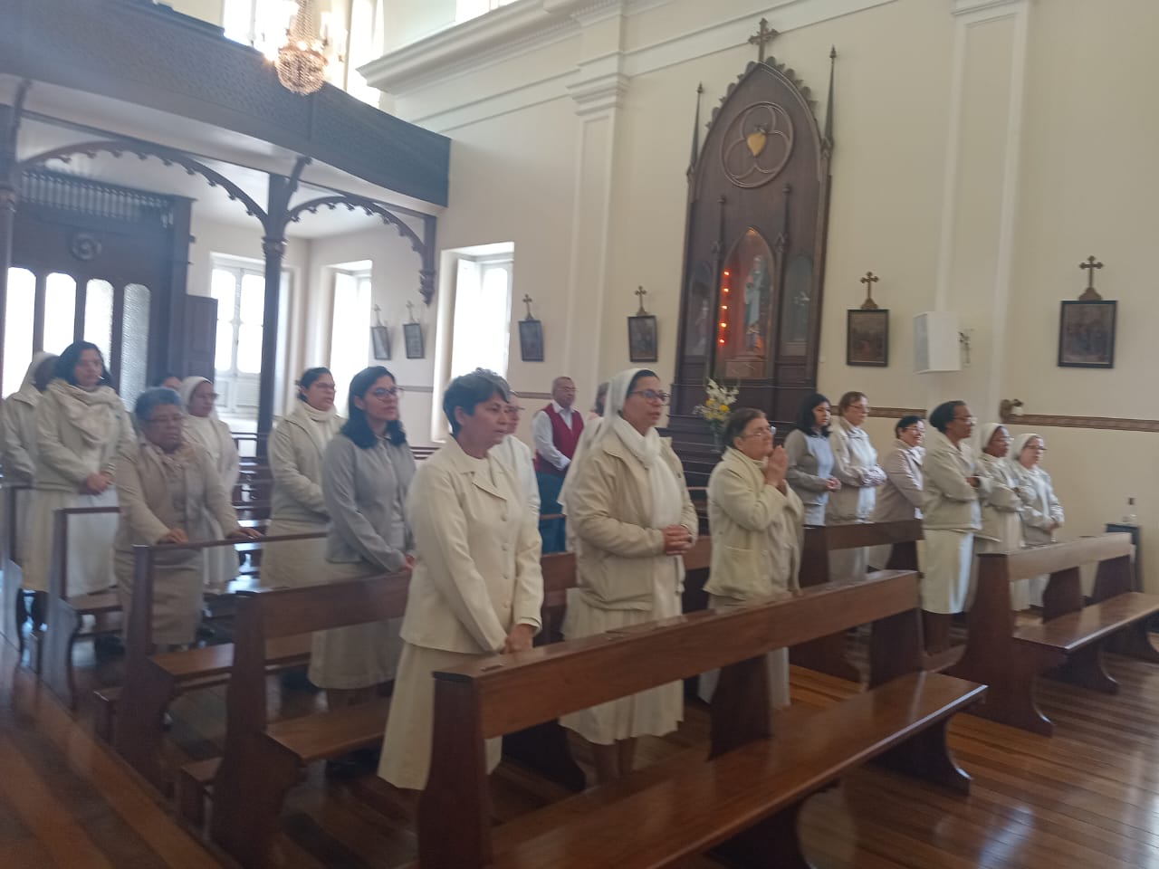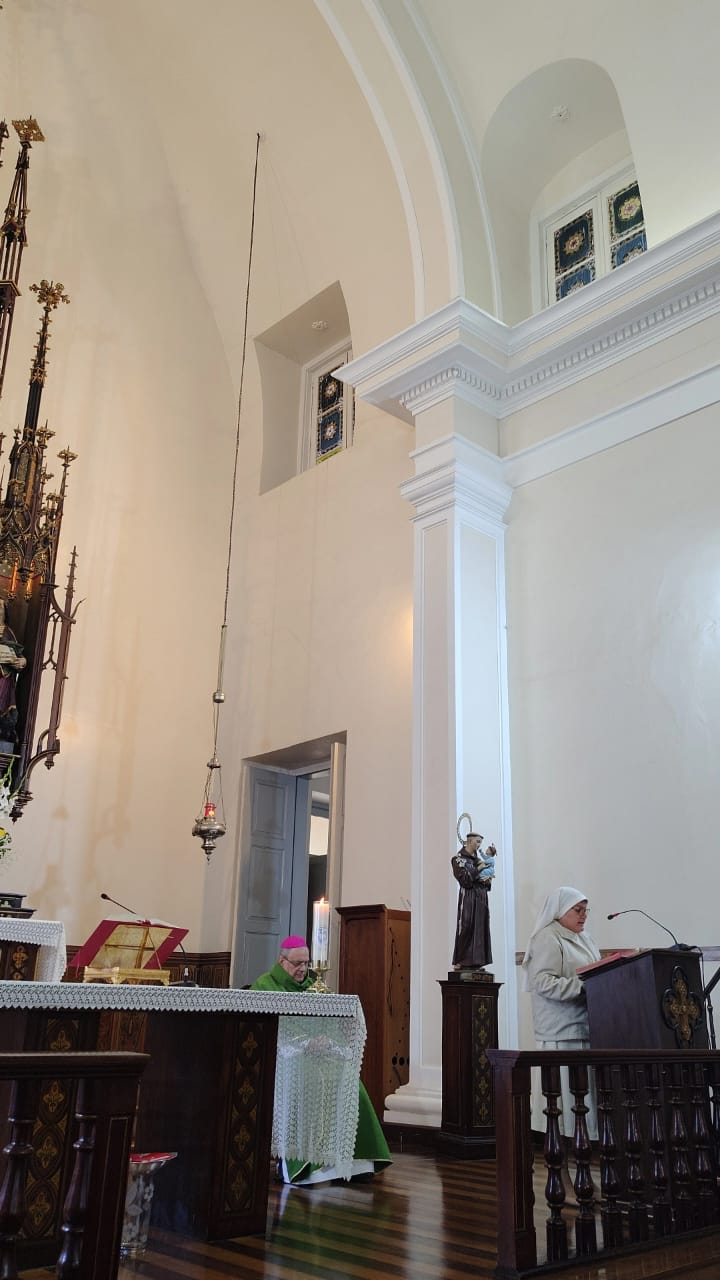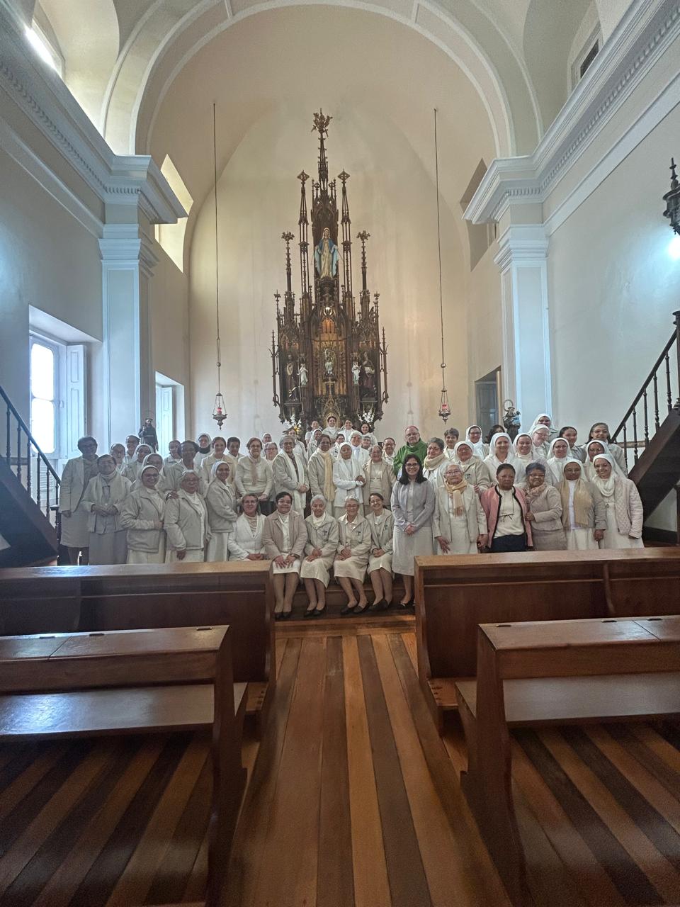 O encerramento solene aconteceu com a celebração da Santa Missa, presidida por Dom Joel Portella Amado, Bispo da Diocese de Petrópolis, na Capela de Nossa Senhora do Amparo — lugar de memória e missão para cada Irmã da Congregação. Em sua homilia, Dom Joel nos exortou a permanecermos firmes na fé, cultivando o cuidado com a vida como testemunho do Evangelho, em fidelidade ao nosso Carisma do Amparo.