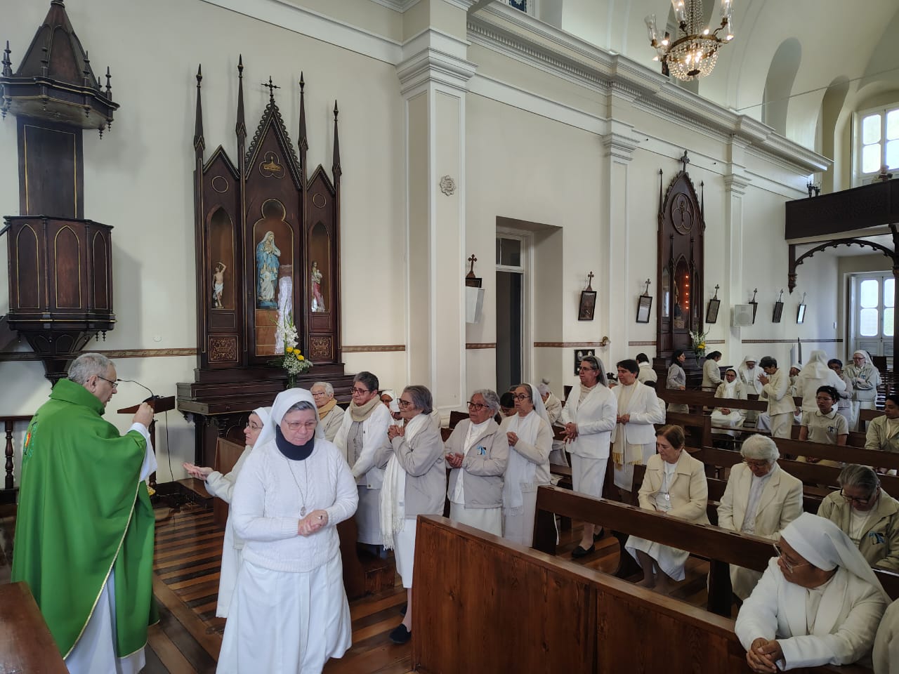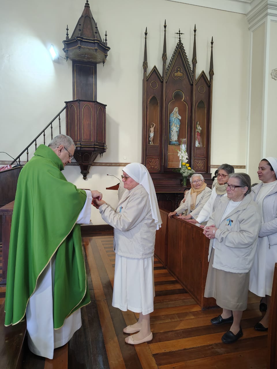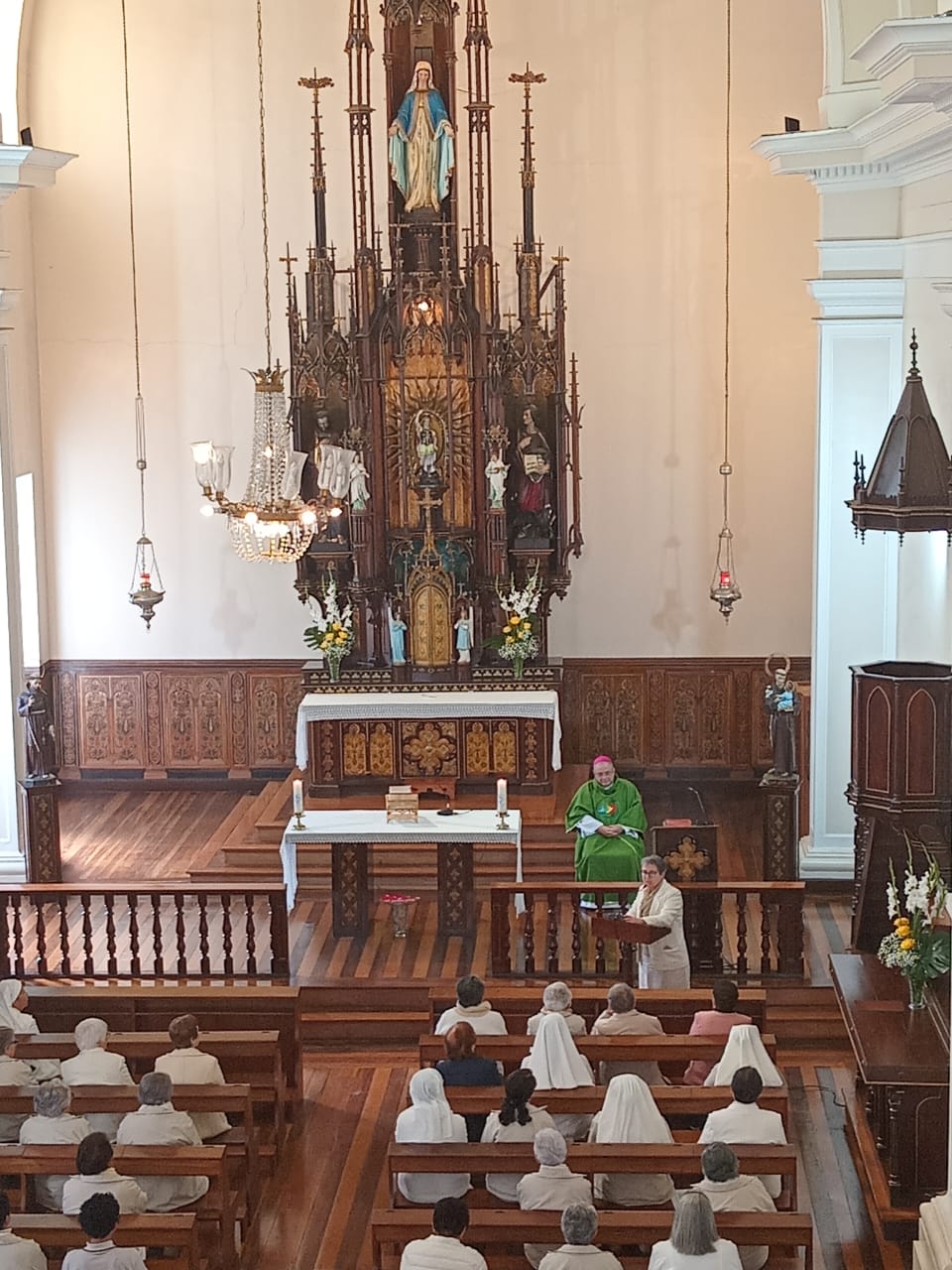 O encerramento solene aconteceu com a celebração da Santa Missa, presidida por Dom Joel Portella Amado, Bispo da Diocese de Petrópolis, na Capela de Nossa Senhora do Amparo — lugar de memória e missão para cada Irmã da Congregação. Em sua homilia, Dom Joel nos exortou a permanecermos firmes na fé, cultivando o cuidado com a vida como testemunho do Evangelho, em fidelidade ao nosso Carisma do Amparo.