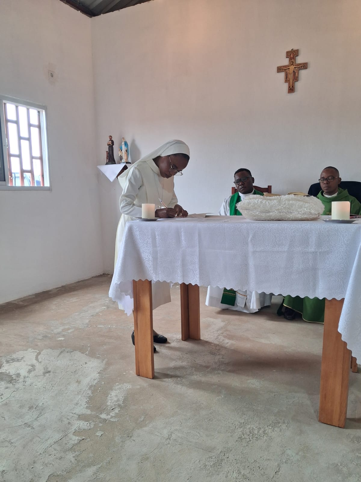 Neste mesmo clima de gratidão e esperança, foi realizada a bênção e a entrega do hábito à noviça Aline, gesto carregado de profundo significado, que expressa pertença, consagração e disponibilidade para trilhar o caminho que conduz à profissão religiosa.